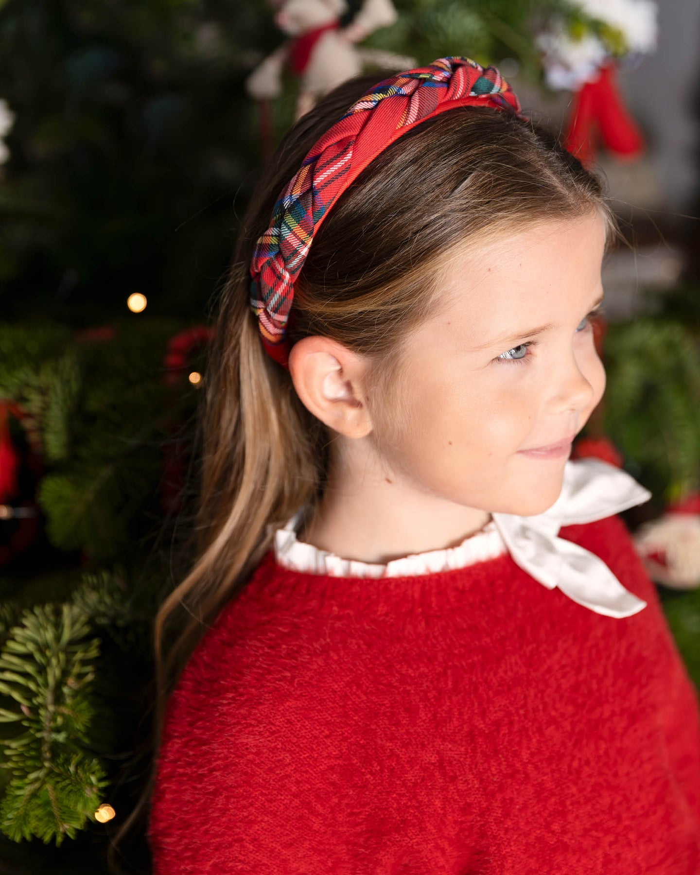 RED CHECKED BRAIDED HEADBAND