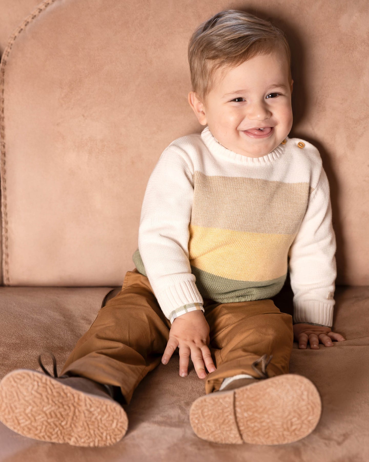 Knitted jumper in four colours: green, sand, cinnamon and cream.