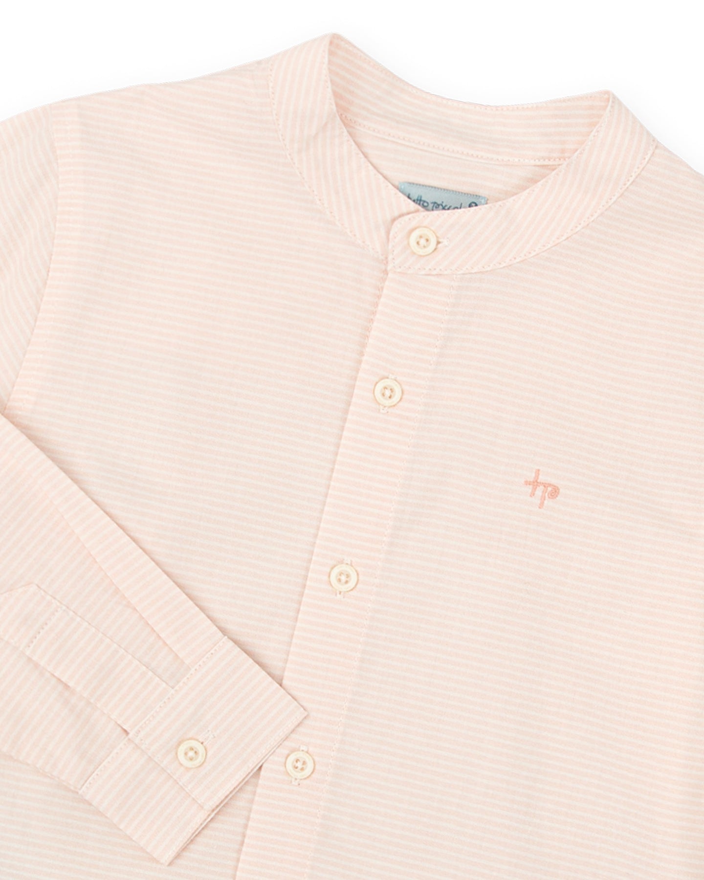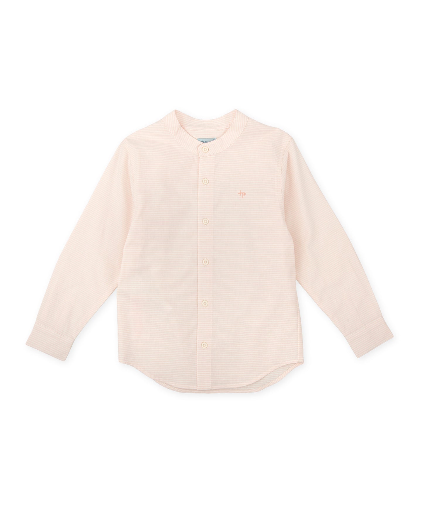 Long-sleeved shirt in striped fabric in two color versions: porcelain and petal. Mandarin collar. "Tp" embroidered detail. Front opening with buttons.
