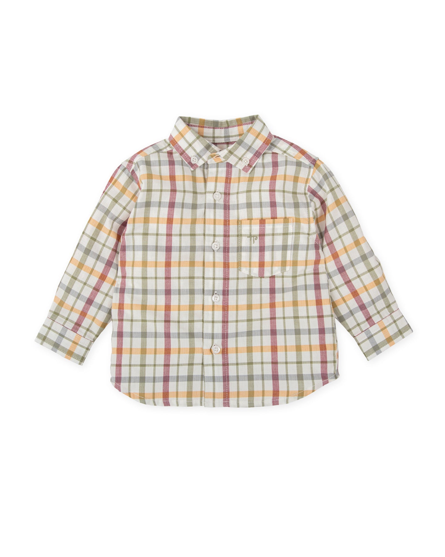 Long-sleeved shirt made of checkered shirting fabric, front pockets, front opening with buttons.