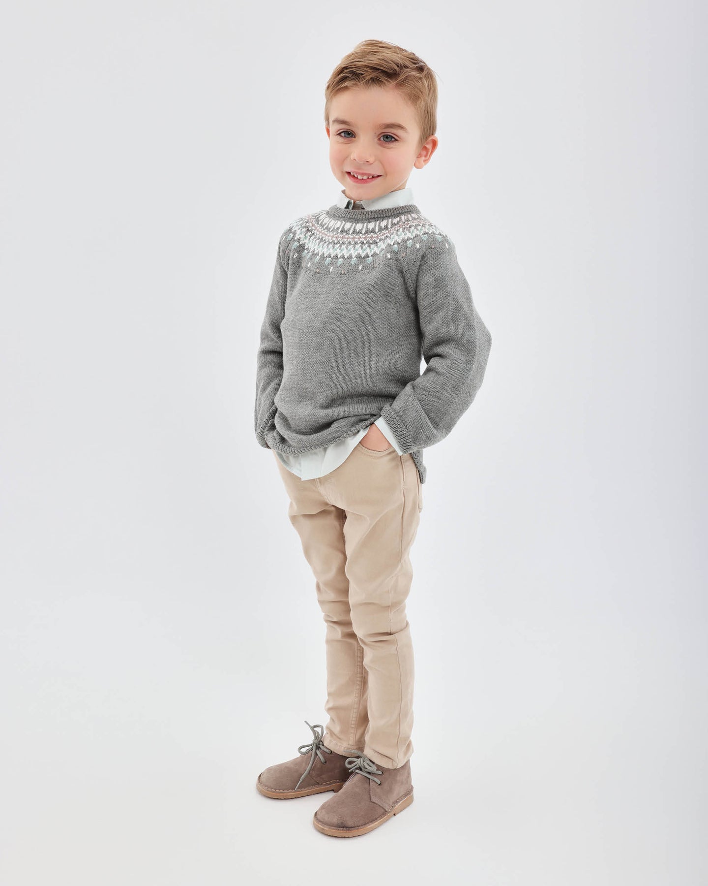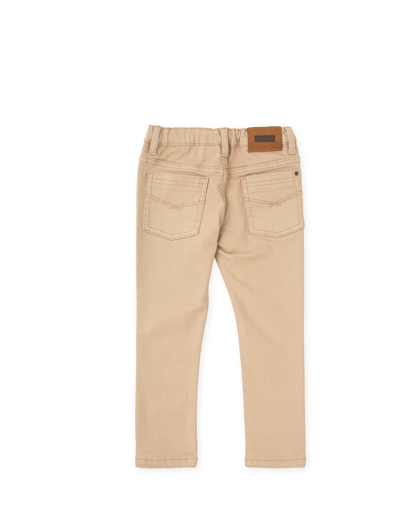 Pantalone di drill con rivetti, bottone a pressione e vita con elastico regolabile. Cinque versioni di colore: grigio, blu navy, sabbia, kaki e camel.