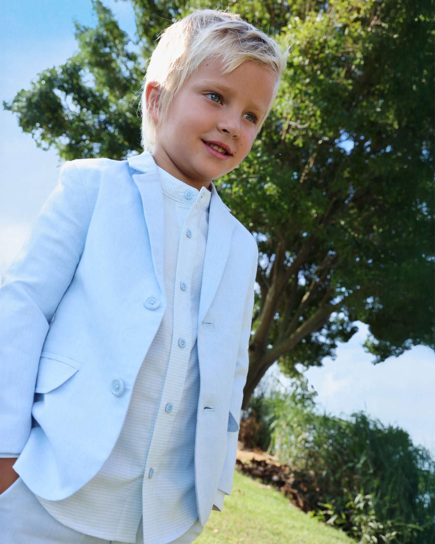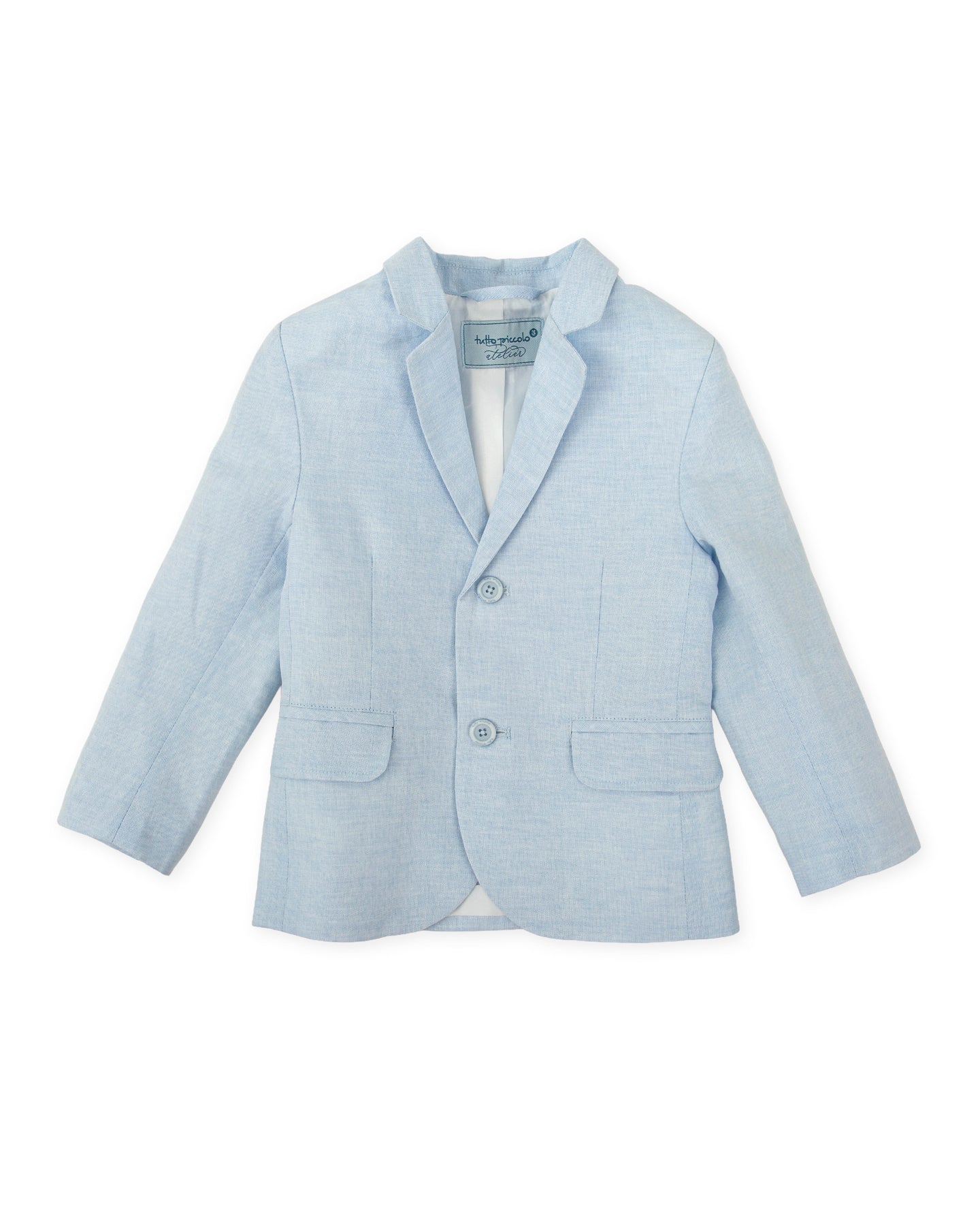 Americana de lino en color porcelana con suave forro. Abertura delantera con botones.