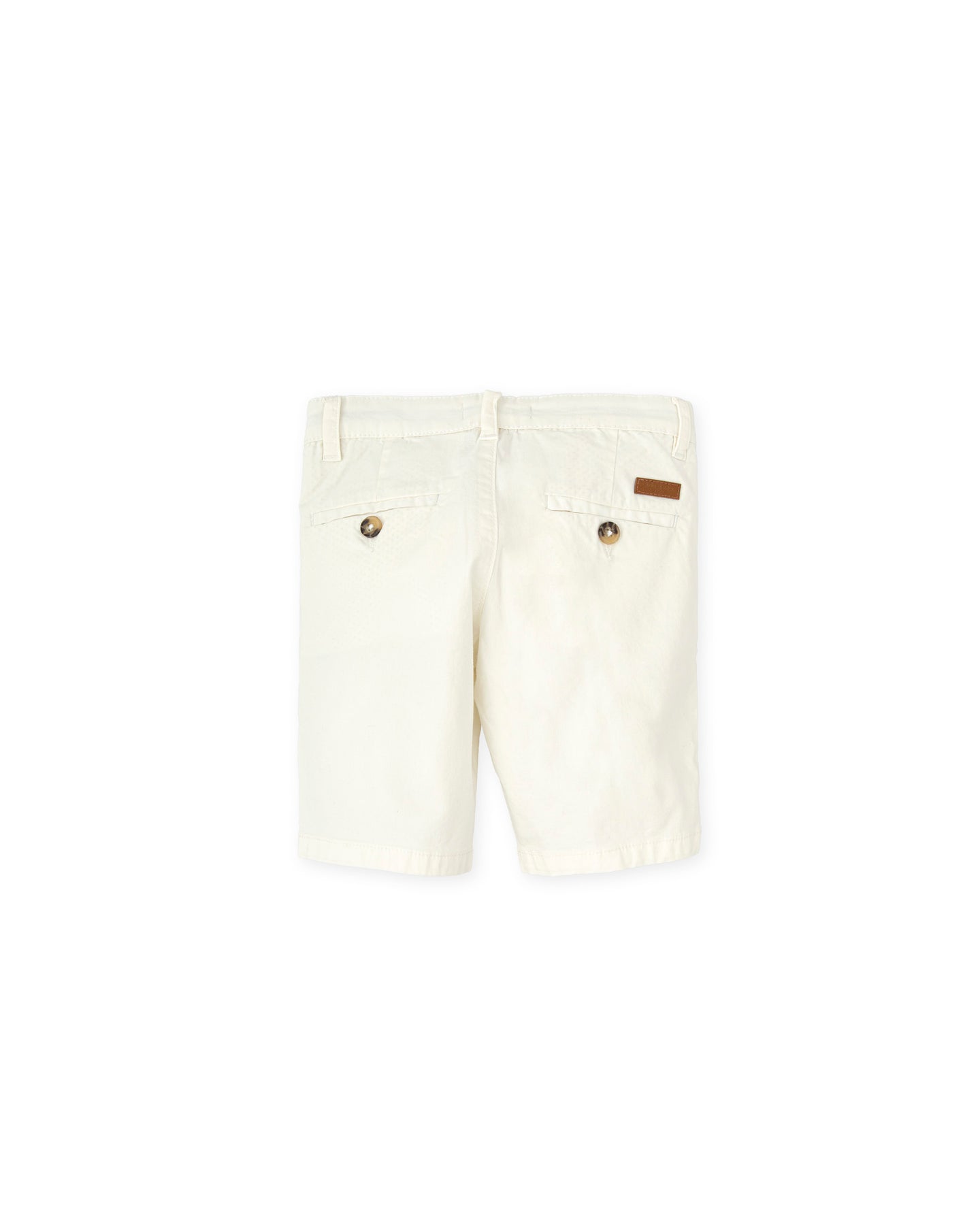 Bermuda de tejido gabardina, elástico ajustable en cintura y abertura delantera con botón. Cinco versiones de color: azul marino, arena, naranja, rojo y blanco.
