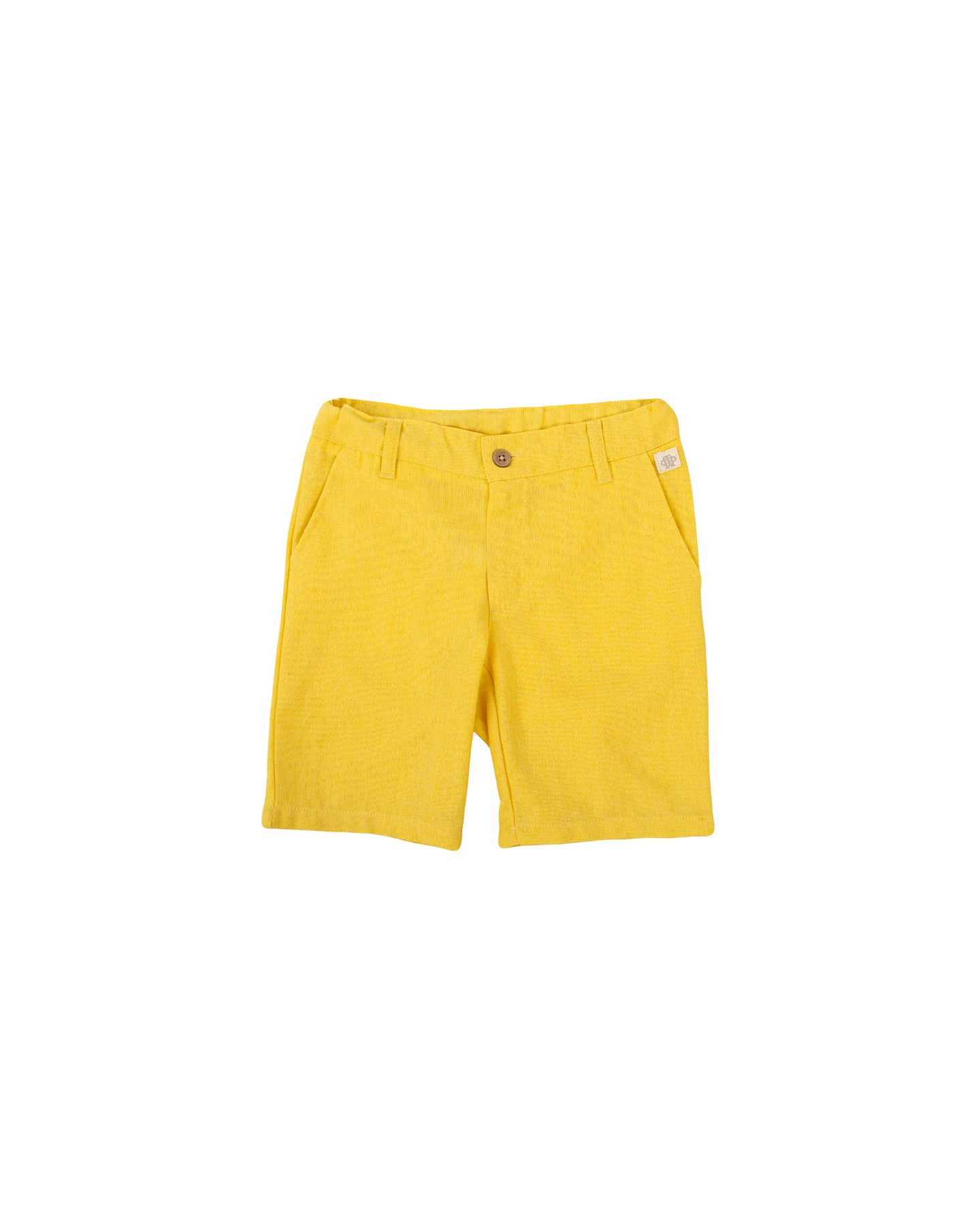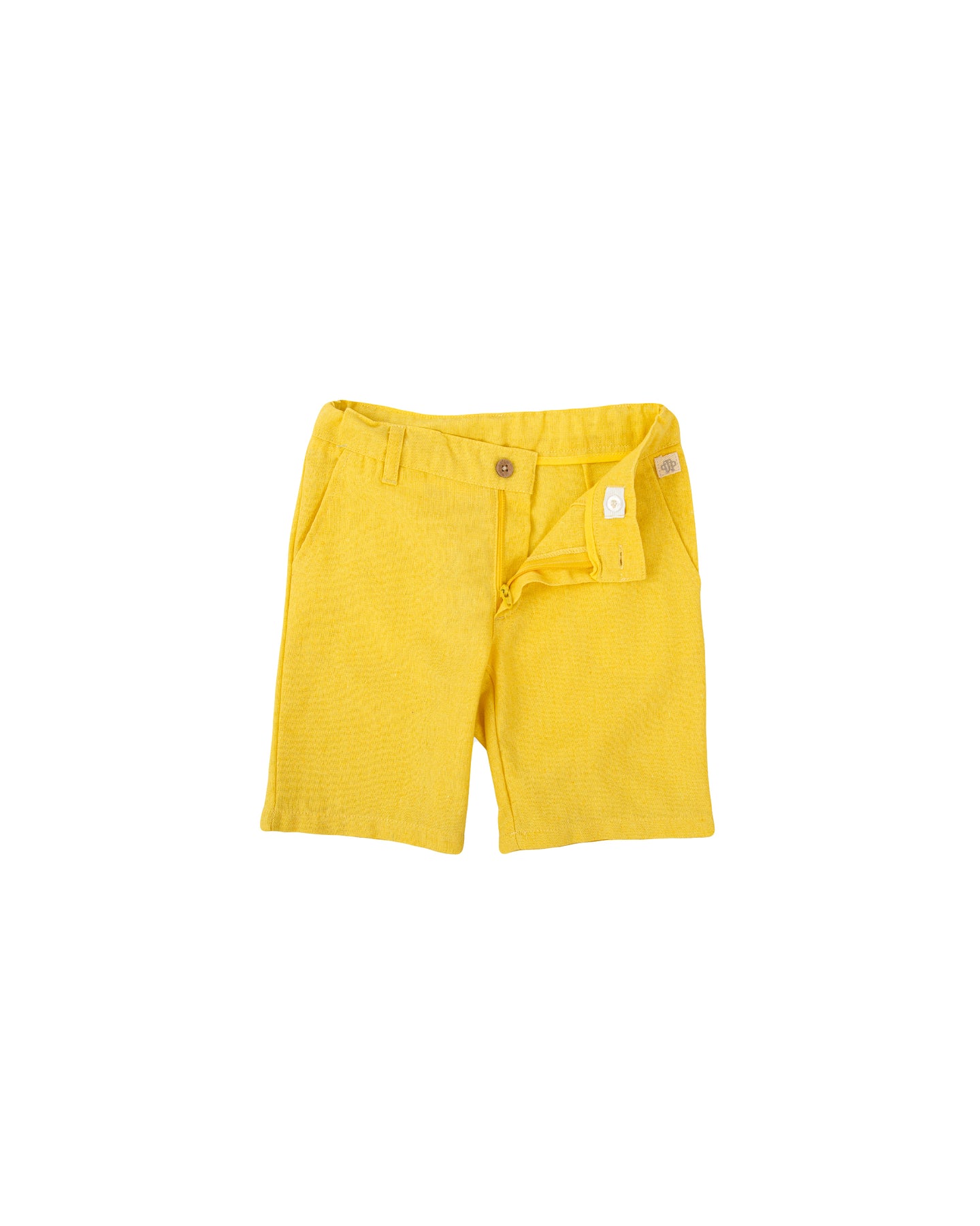 Bermuda en tejido lino mezcla. Cintura ajustable. Abertura delantera con botón y cremallera. Dos versiones de color: amarillo y verde mar.