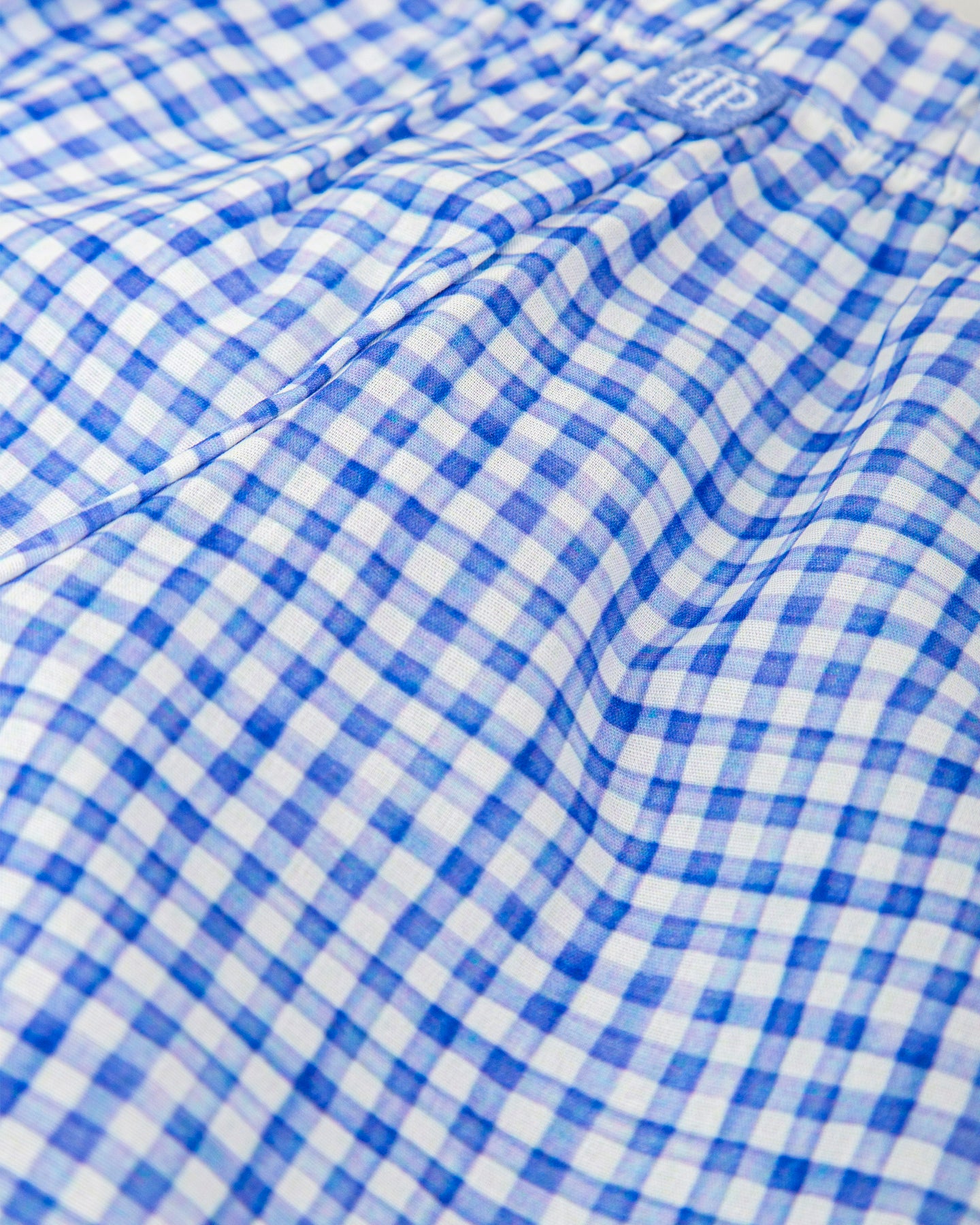 Camisa de manga larga de popelín estampado vichy con abertura delantera con botones y cuello mao.