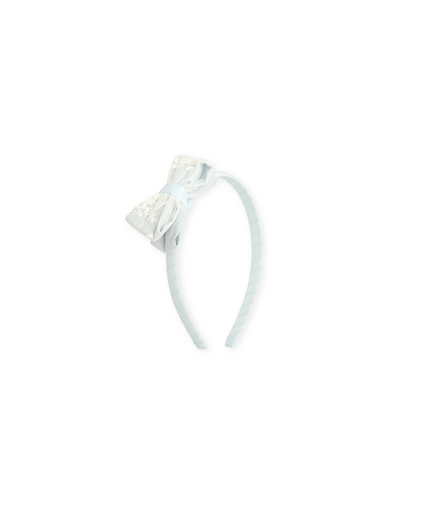 Diadema en color porcelana con detalle de lazo en lino y puntilla.
