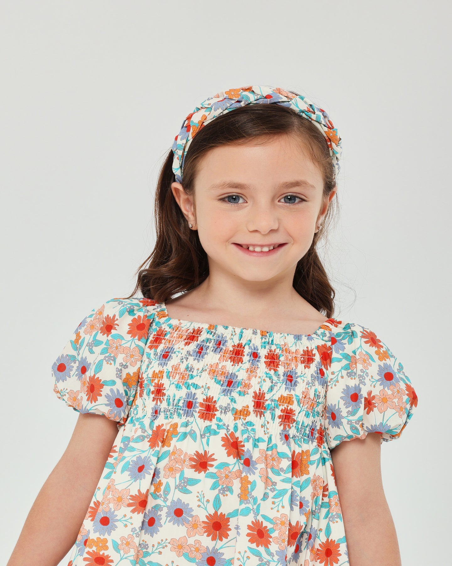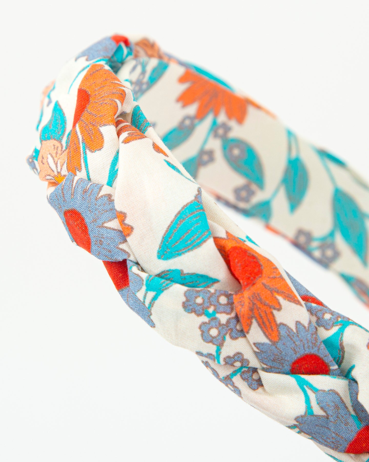 Diadema trenzada con estampado de flores.