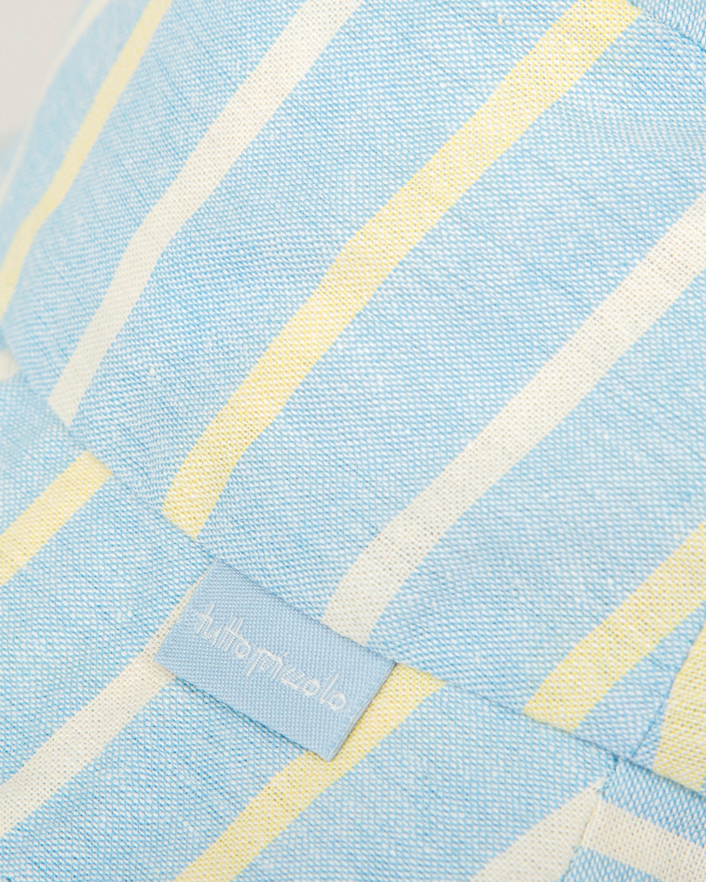 Gorro de tejido de rayas forrado de suave voile blanco.